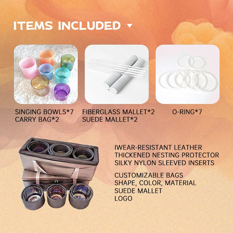 7 cuencos de cristal (cada uno afinado a la nota correspondiente a un chakra).