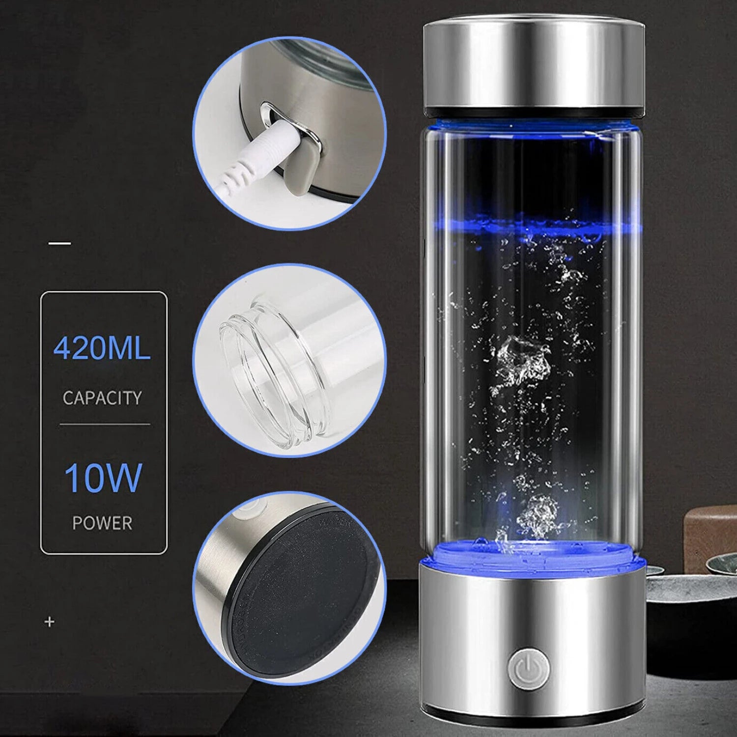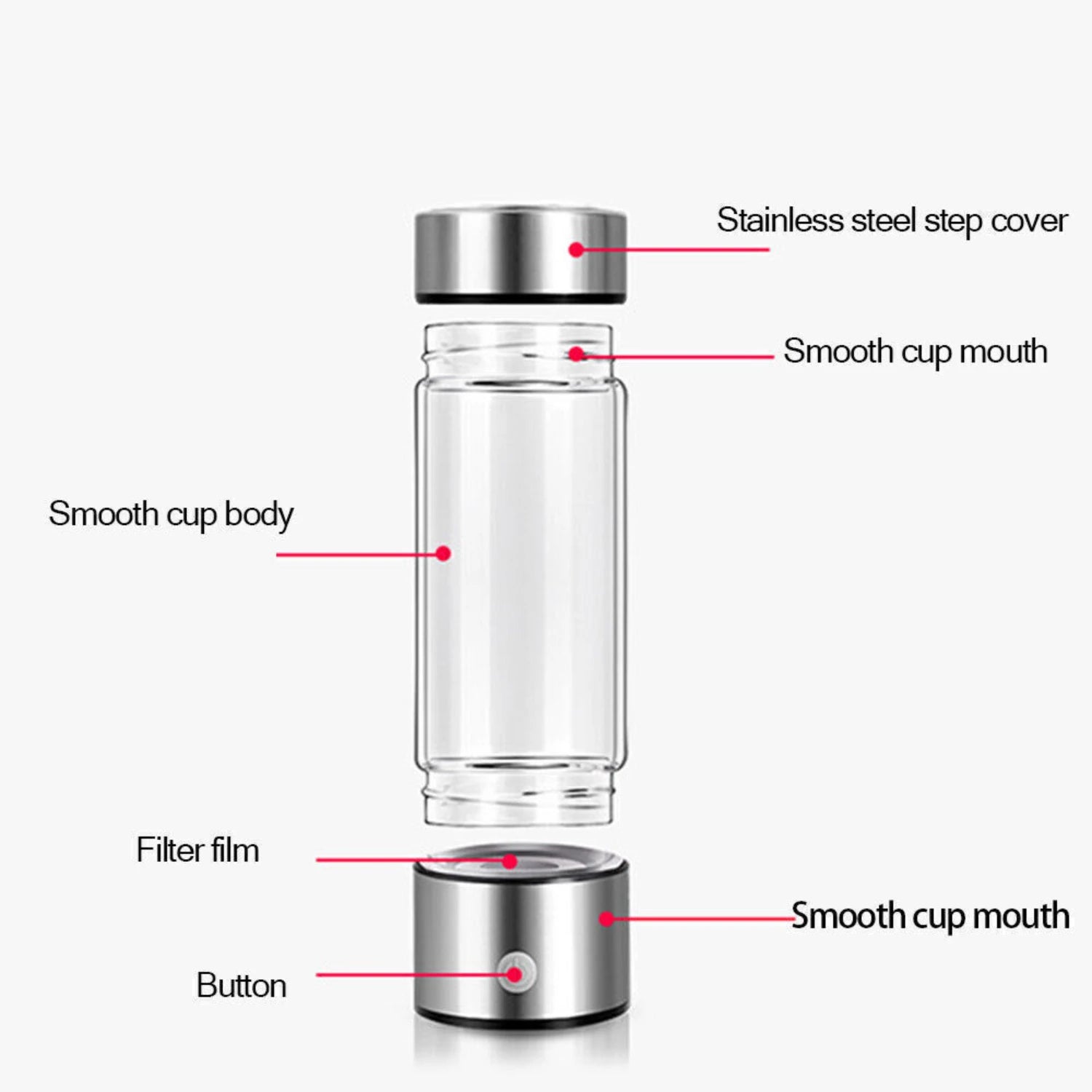 Esta innovadora botella de vidrio con tecnología ionizadora transforma el agua común en un elixir cargado de vida y energía. A través de un proceso eléctrico seguro, libera iones negativos que ayudan a reducir la oxidación, mejorar la absorción celular y revitalizar tu campo energético.