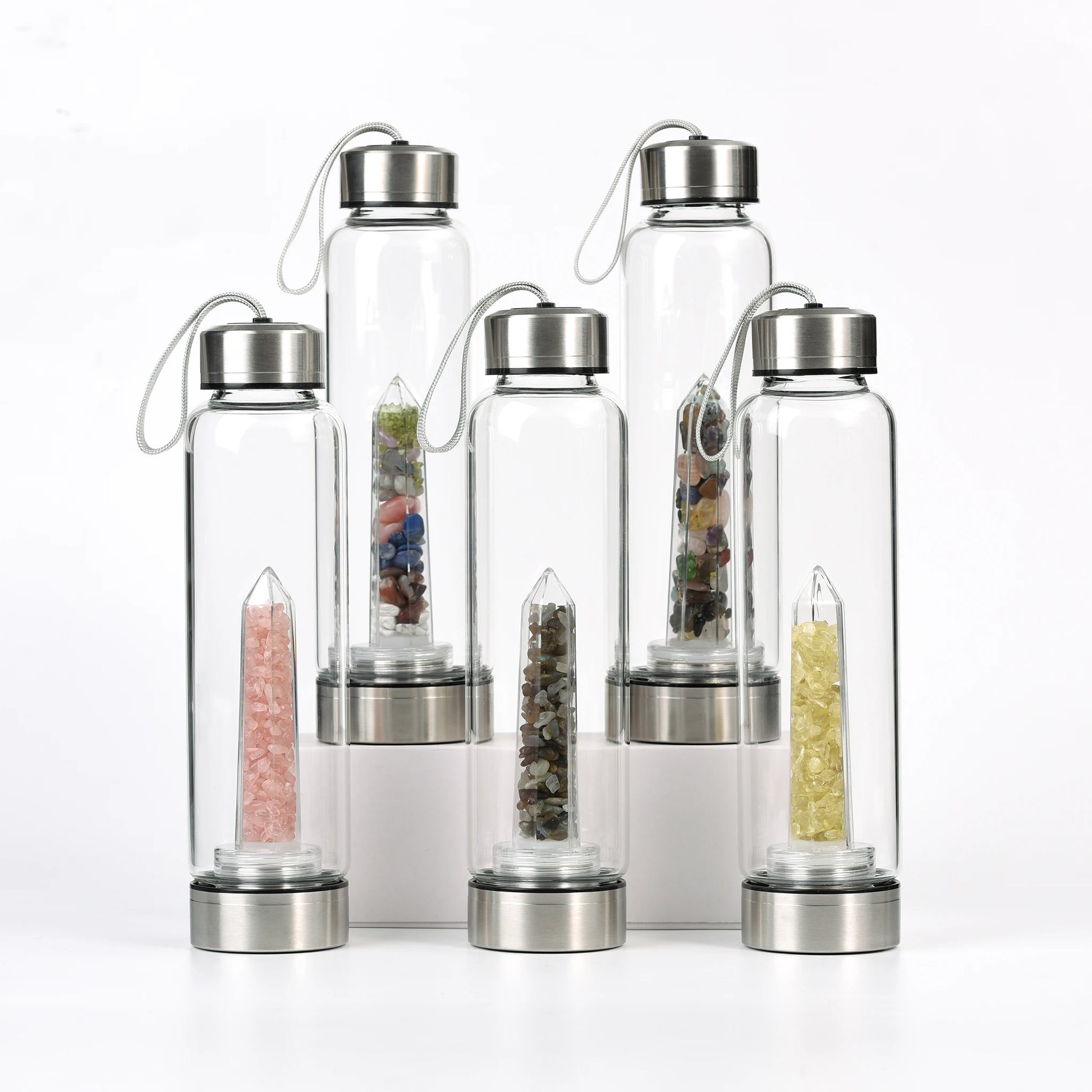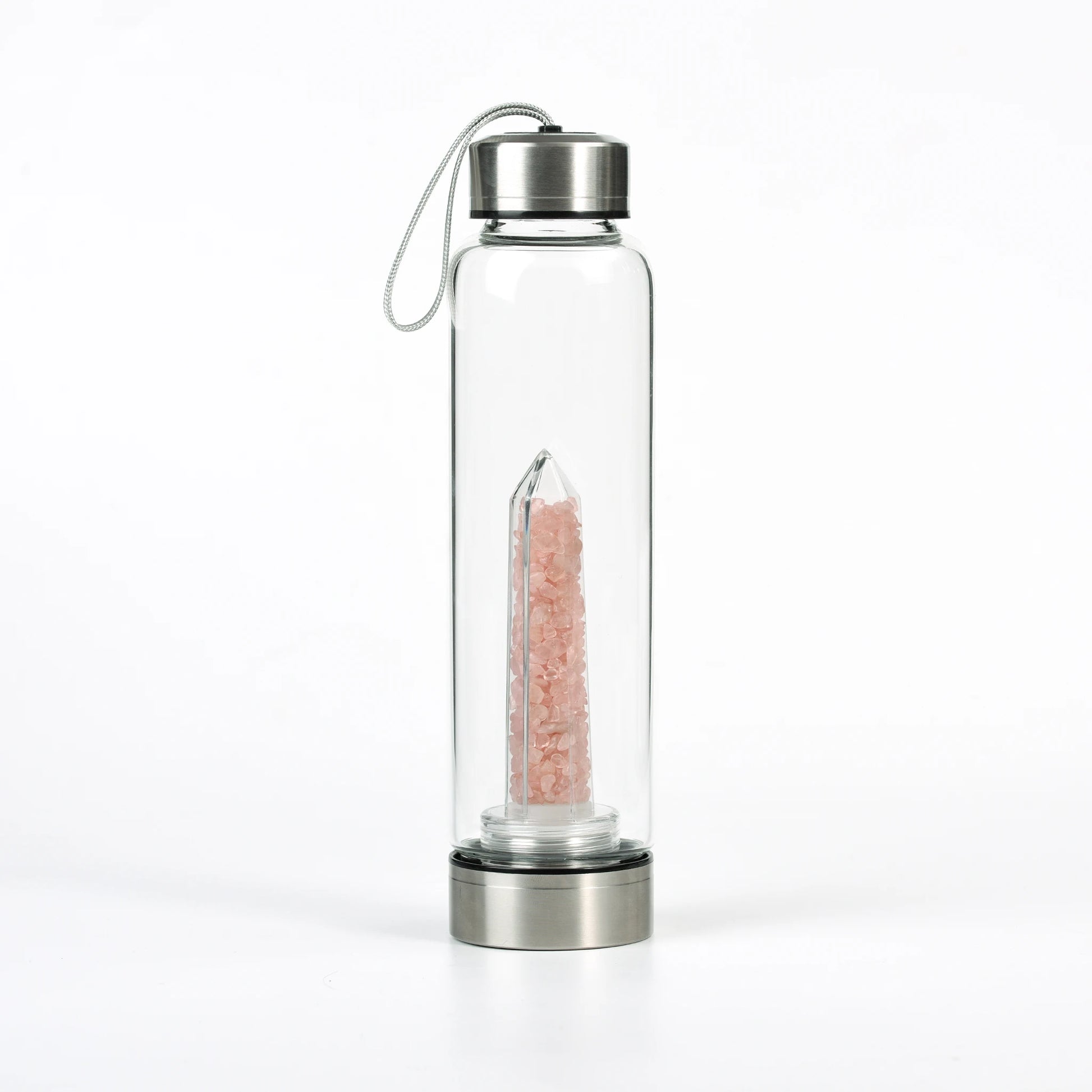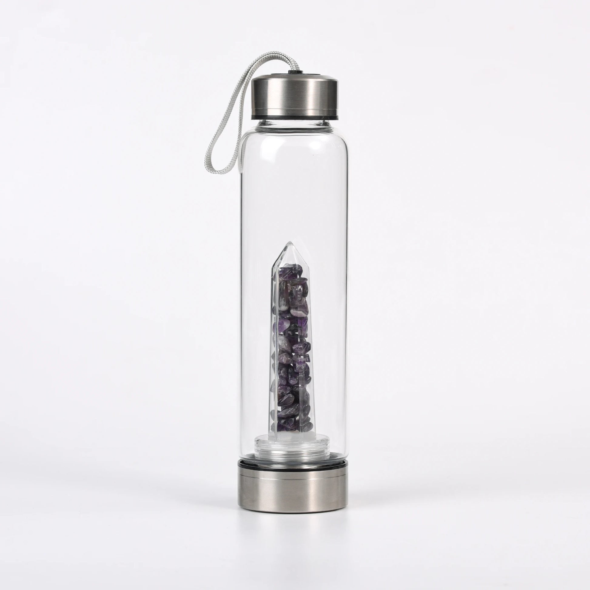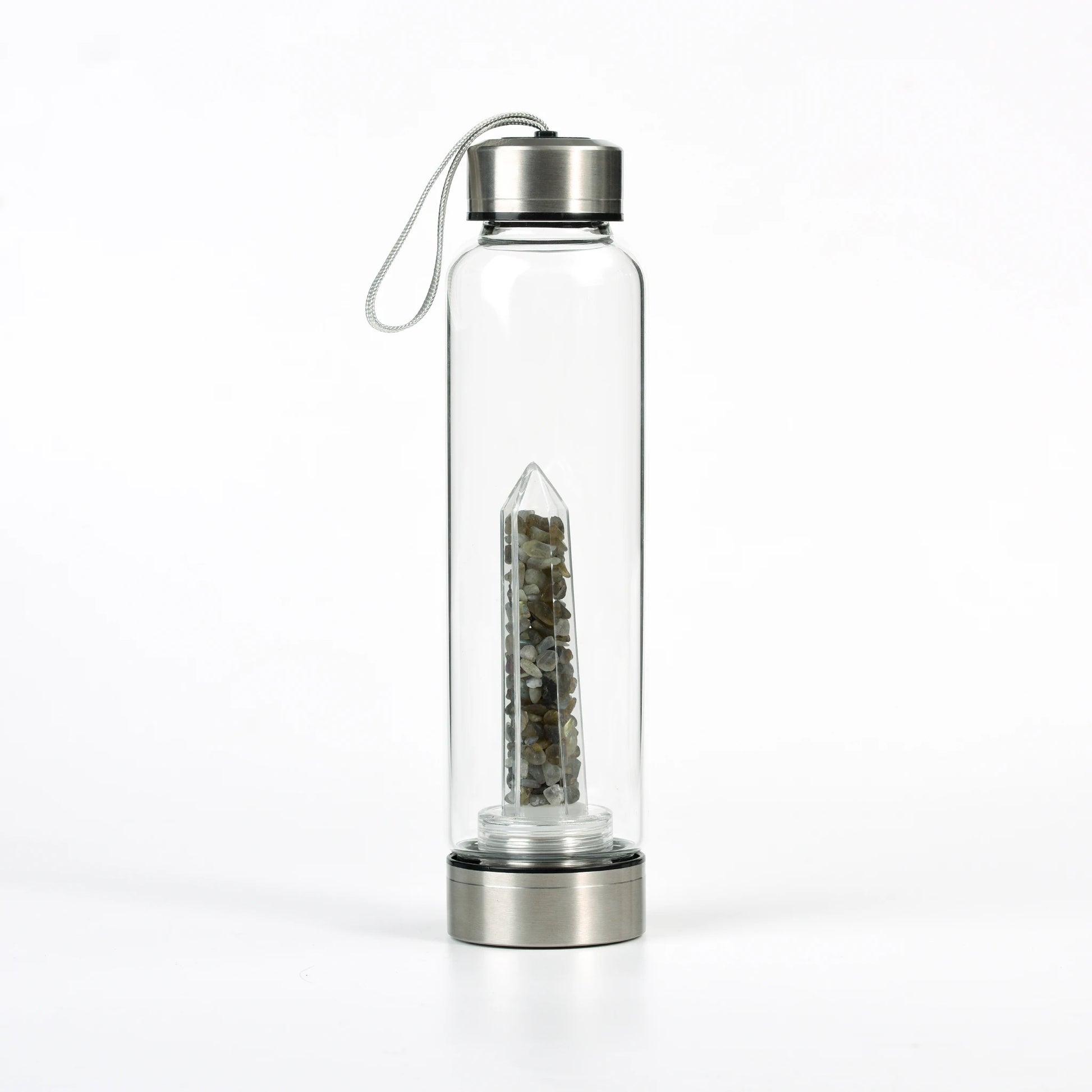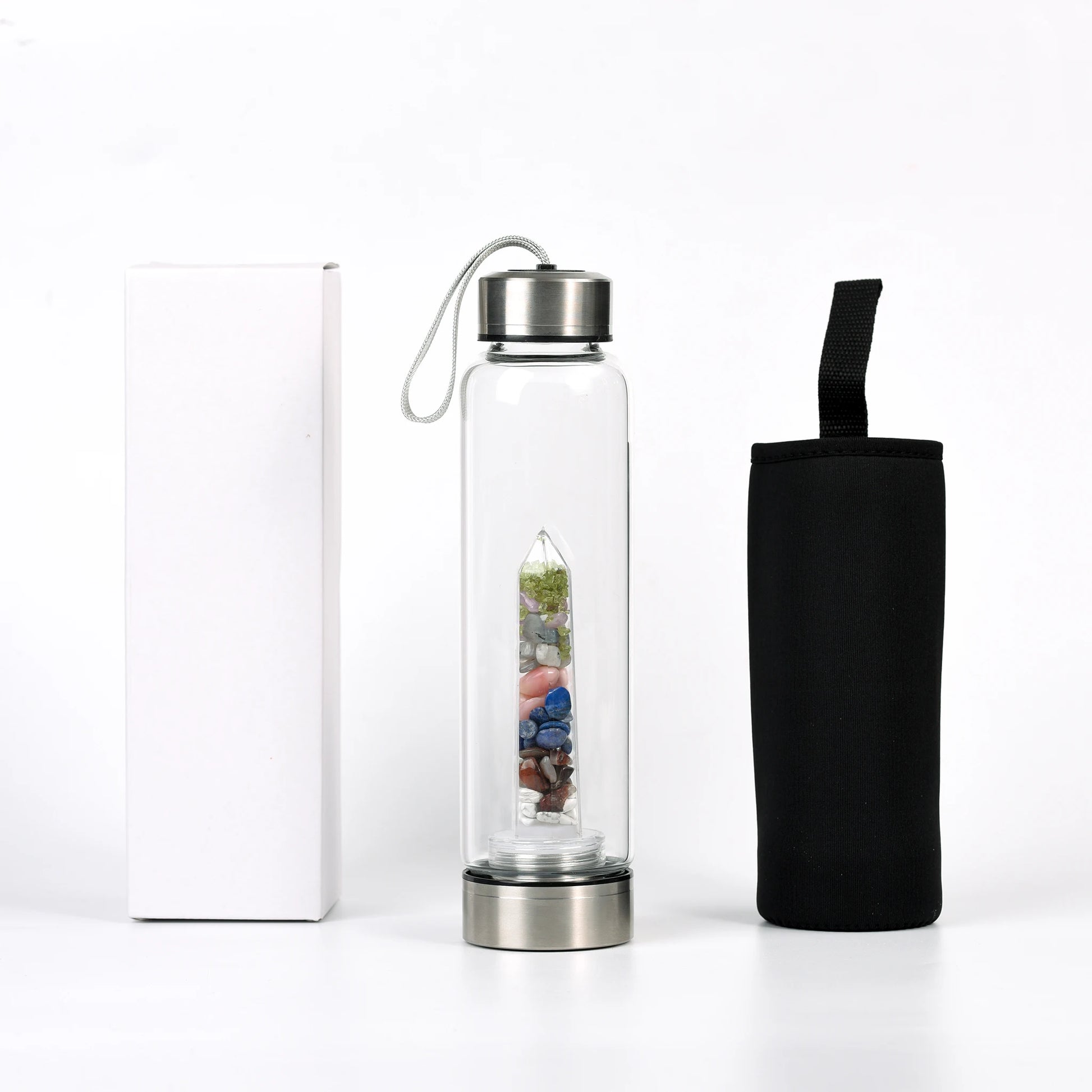 Eleva tu experiencia de hidratación con esta botella energética de vidrio, diseñada para transformar el agua en una fuente vibracional de luz y bienestar.